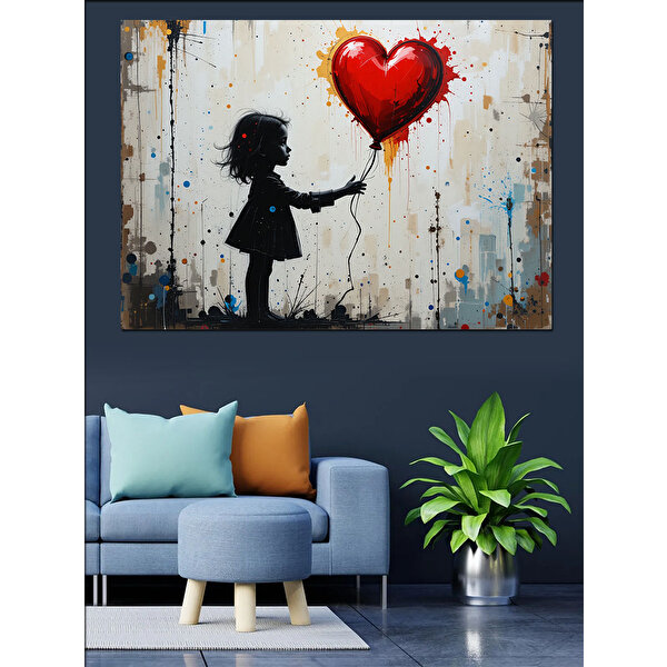 Balon Tutan Kız Dekoratif Kanvas - Mdf Ahşap Tablo
