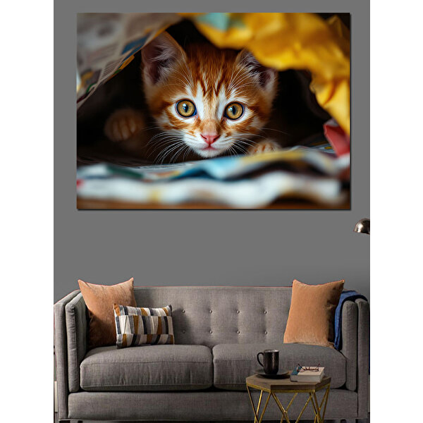 Battaniyede Saklanan Yavru Kedi Dekoratif Kanvas - Mdf Ahşap Tablo