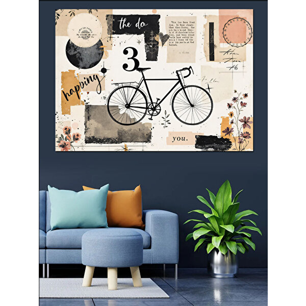 Beyaz Bisiklet Ve Kolaj Dekoratif Kanvas - Mdf Ahşap Tablo