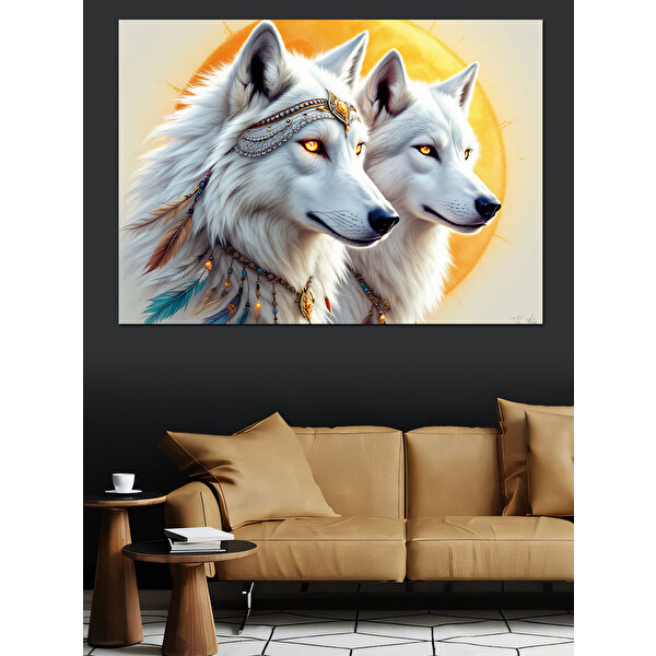 Tablomega Beyaz Kürklü Kurt Çifti Dekoratif Kanvas - Mdf Ahşap Tablo 50x70 cm