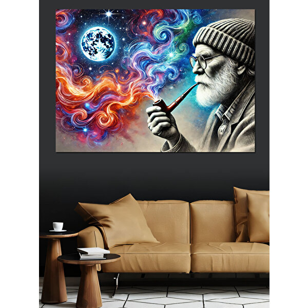 Bilge Adam Ve Pipo Dekoratif Kanvas - Mdf Ahşap Tablo