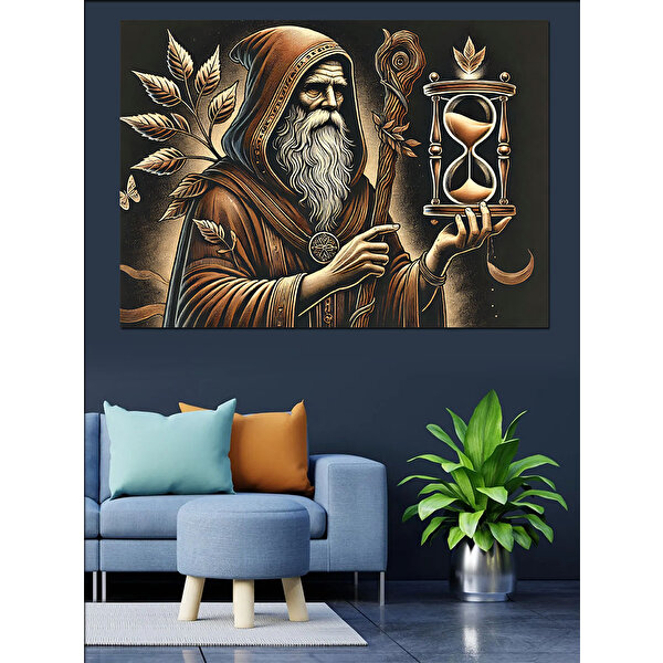 Tablomega Bilge Yaşlı Adam Ve Kum Saati Dekoratif Kanvas - Mdf Ahşap Tablo 100x140 cm