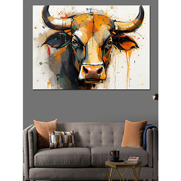 Tablomega Boynuzlu Boğa İllüstrasyonu Dekoratif Kanvas - Mdf Ahşap Tablo 35x50 cm