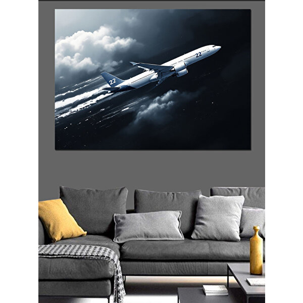 Tablomega Bulutların Üstünde Jet Uçağı Dekoratif Kanvas - Mdf Ahşap Tablo 35x50 cm