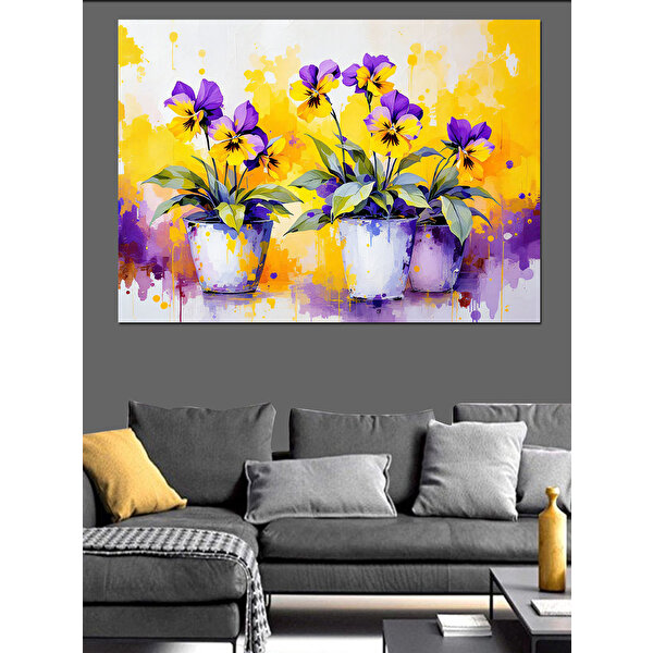 Tablomega Cam Vazo İçinde Menekşeler Dekoratif Kanvas - Mdf Ahşap Tablo 25x35 cm