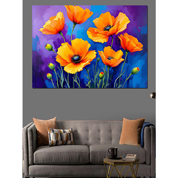 Canlı Turuncu Gelincik Çiçekleri Dekoratif Kanvas - Mdf Ahşap Tablo