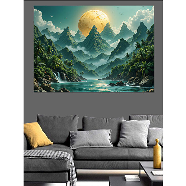 Tablomega Dağlar Ve Ay Manzarası Dekoratif Kanvas - Mdf Ahşap Tablo 70x100 cm