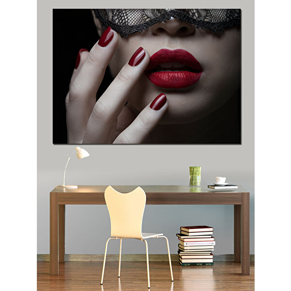 Tablomega Dantelli Maskeli Kadın Dekoratif Kanvas - Mdf Ahşap Tablo 100x140 cm