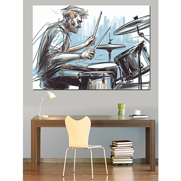 Tablomega Davul Çalan Adam Dekoratif Kanvas - Mdf Ahşap Tablo 35x50 cm