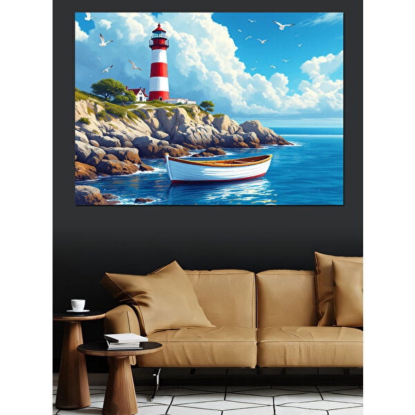 Deniz Feneri Ve Mavi Deniz Dekoratif Kanvas - Mdf Ahşap Tablo