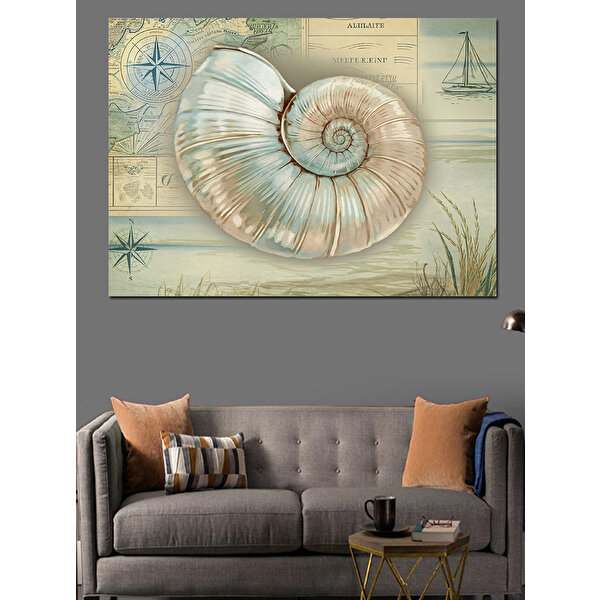 Tablomega Deniz Kabuklu Bilimsel Çizim Dekoratif Kanvas - Mdf Ahşap Tablo 70x100 cm