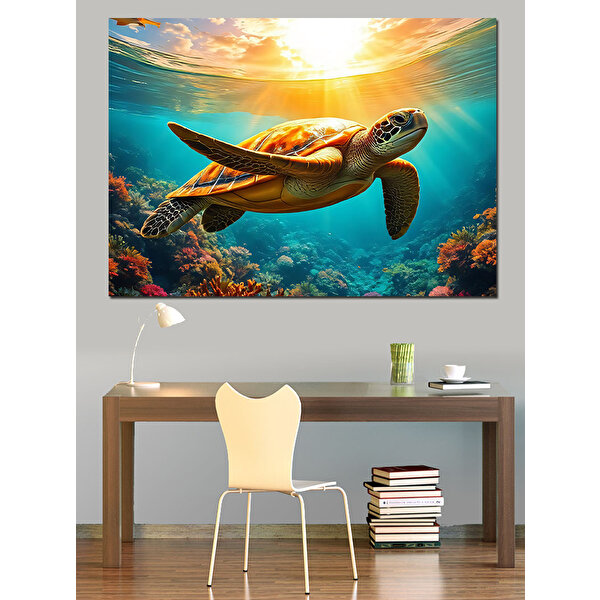 Tablomega Denizaltında Yüzen Deniz Kaplumbağası Dekoratif Kanvas - Mdf Ahşap Tablo 50x70 cm