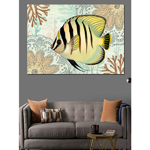 Tablomega Desenli Balık Turkuaz Zeminde Dekoratif Kanvas - Mdf Ahşap Tablo 50x70 cm