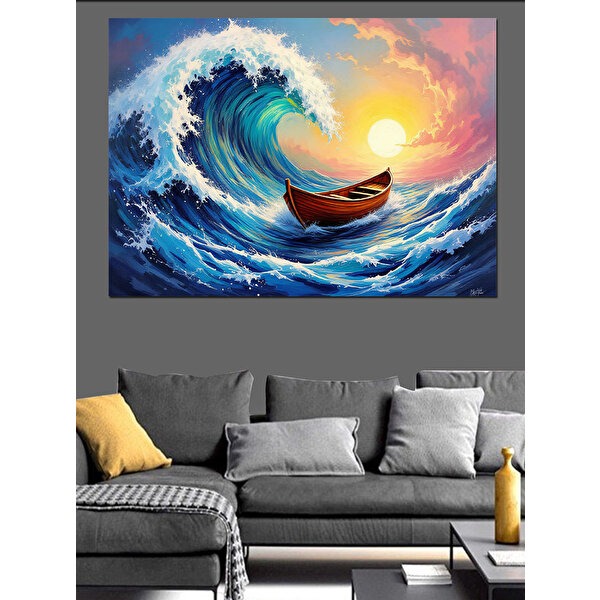 Tablomega Dev Dalgada Küçük Kayık Dekoratif Kanvas - Mdf Ahşap Tablo 70x100 cm