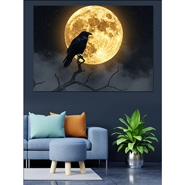 Dolunay Ve Karga Dekoratif Kanvas - Mdf Ahşap Tablo