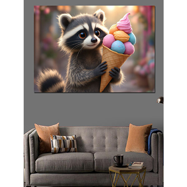 Tablomega Dondurma Yiyen Rakun Dekoratif Kanvas - Mdf Ahşap Tablo 35x50 cm