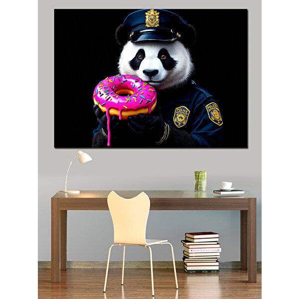 Tablomega Donut Tutan Polis Panda Dekoratif Kanvas - Mdf Ahşap Tablo 70x100 cm