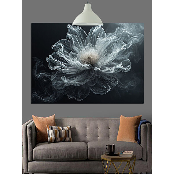 Tablomega Dumanlı Beyaz Çiçek Deseni Dekoratif Kanvas - Mdf Ahşap Tablo 70x100 cm