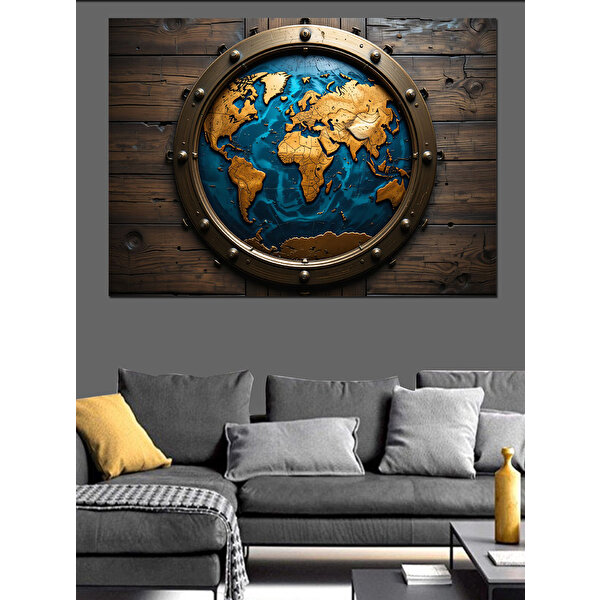 Tablomega Dünya Haritası Ahşap Çerçeve Dekoratif Kanvas - Mdf Ahşap Tablo 50x70 cm