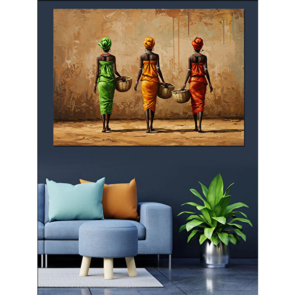 Tablomega Duvar Önünde Afrika Kadınları Dekoratif Kanvas - Mdf Ahşap Tablo 70x100 cm