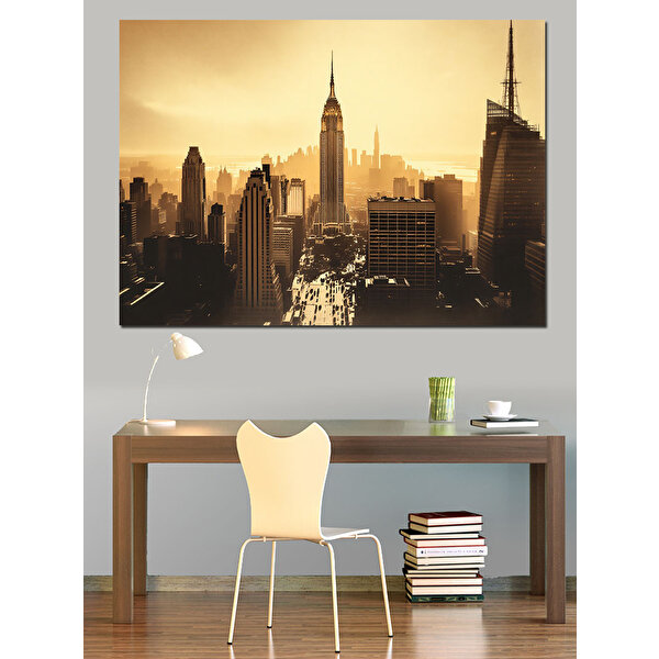 Tablomega Empire State Binası Güneşli Dekoratif Kanvas - Mdf Ahşap Tablo 100x140 cm