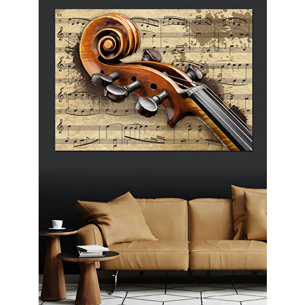 Tablomega Eski Keman Ve Nota Dekoratif Kanvas - Mdf Ahşap Tablo 50x70 cm