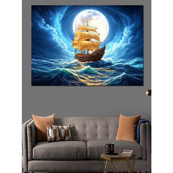 Tablomega Fırtınalı Gece Gemisi Dekoratif Kanvas - Mdf Ahşap Tablo 70x100 cm