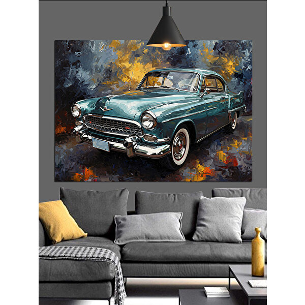Tablomega Gazete Fonunda Klasik Araba Dekoratif Kanvas - Mdf Ahşap Tablo 70x100 cm