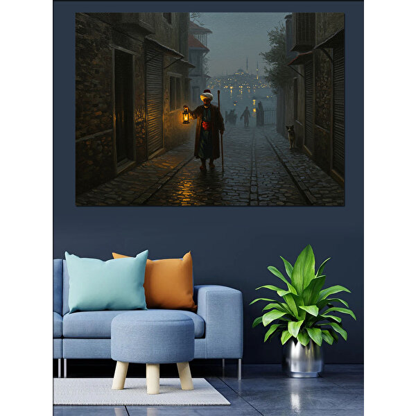 Tablomega Gece Lambasıyla Sisli Sokak Dekoratif Kanvas - Mdf Ahşap Tablo 35x50 cm