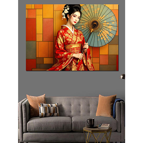 Tablomega Geleneksel Kimonolu Japon Kadın Dekoratif Kanvas - Mdf Ahşap Tablo 100x140 cm