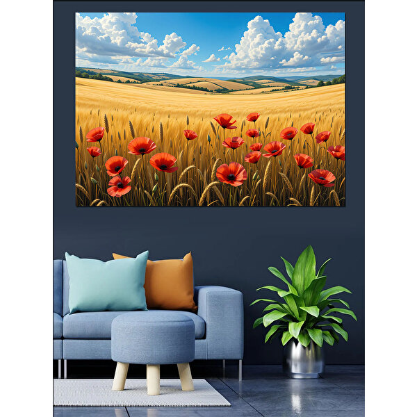 Gelincik Tarlası Mavi Gökyüzü Dekoratif Kanvas - Mdf Ahşap Tablo