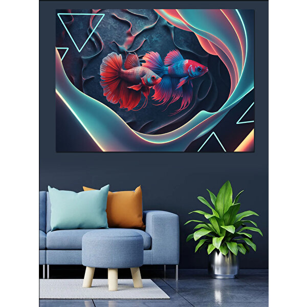 Geometrik Beta Balıkları Dekoratif Kanvas - Mdf Ahşap Tablo