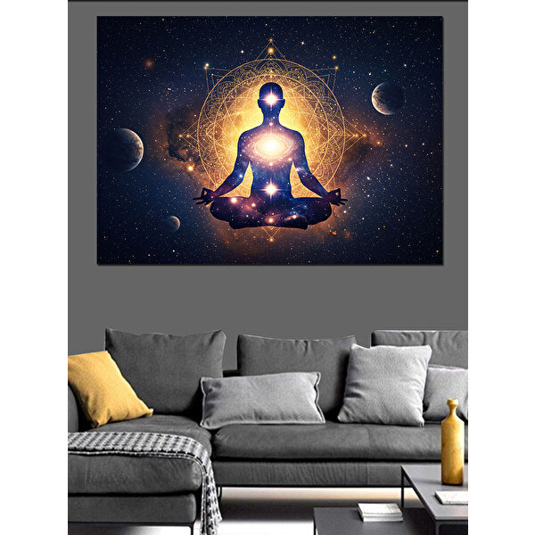 Tablomega Gezegenler Arasında Meditasyon Buda Dekoratif Kanvas - Mdf Ahşap Tablo 50x70 cm