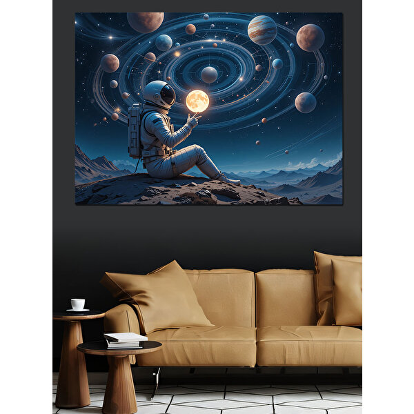 Gezegenli Uzay Kompozisyonu Dekoratif Kanvas - Mdf Ahşap Tablo