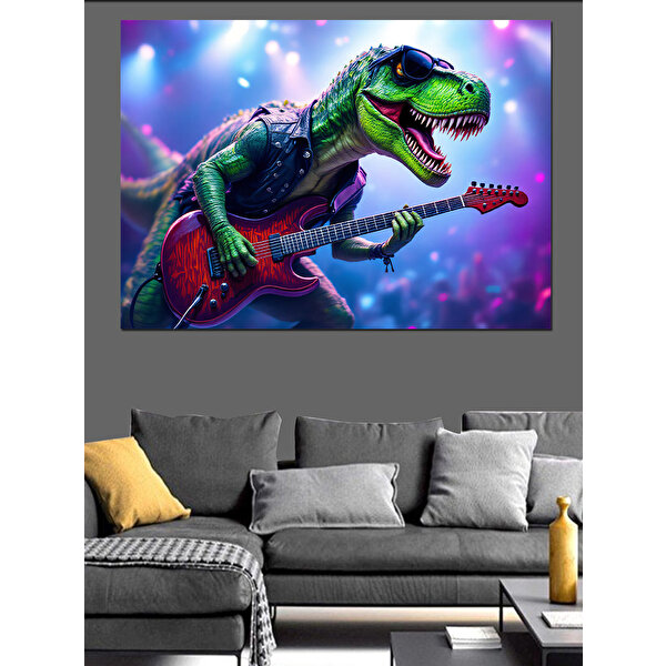 Tablomega Gitar Çalan Renkli Dinozor Dekoratif Kanvas - Mdf Ahşap Tablo 70x100 cm