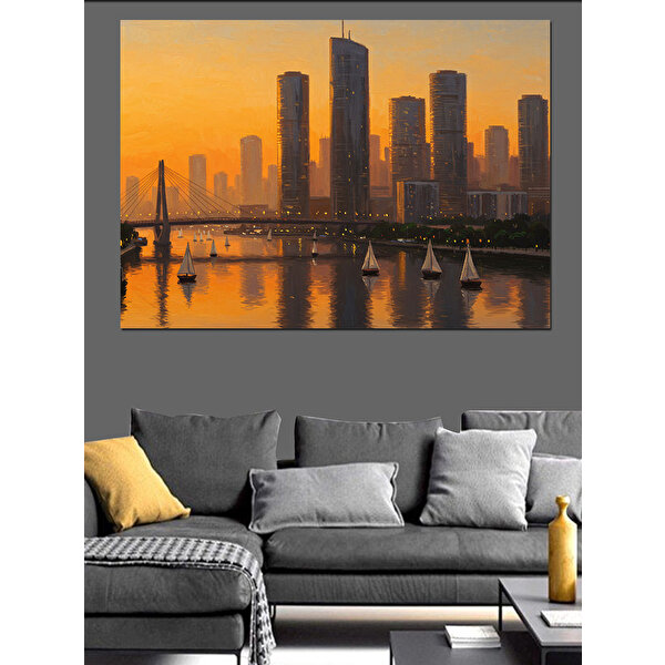Tablomega Gün Batımı Şehir Manzarası Dekoratif Kanvas - Mdf Ahşap Tablo 70x100 cm