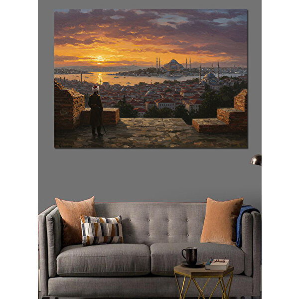 Gün Batımında İstanbul Silueti Dekoratif Kanvas - Mdf Ahşap Tablo