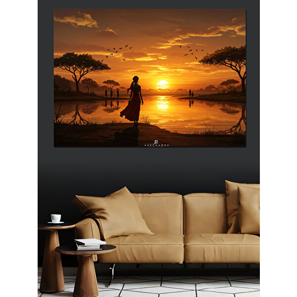 Tablomega Gün Batımında Sahil Yürüyüşü Dekoratif Kanvas - Mdf Ahşap Tablo 70x100 cm