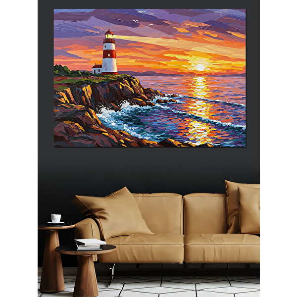 Günbatımında Deniz Feneri Manzarası Dekoratif Kanvas - Mdf Ahşap Tablo
