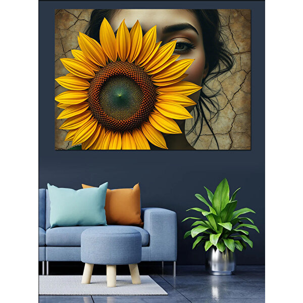 Tablomega Günebakan Ve Kadın Dekoratif Kanvas - Mdf Ahşap Tablo 35x50 cm