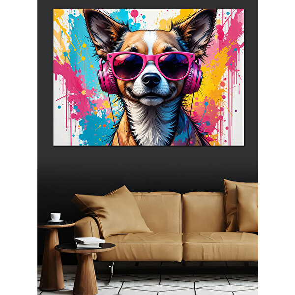 Tablomega Güneş Gözlüklü Sevimli Köpek Dekoratif Kanvas - Mdf Ahşap Tablo 70x100 cm
