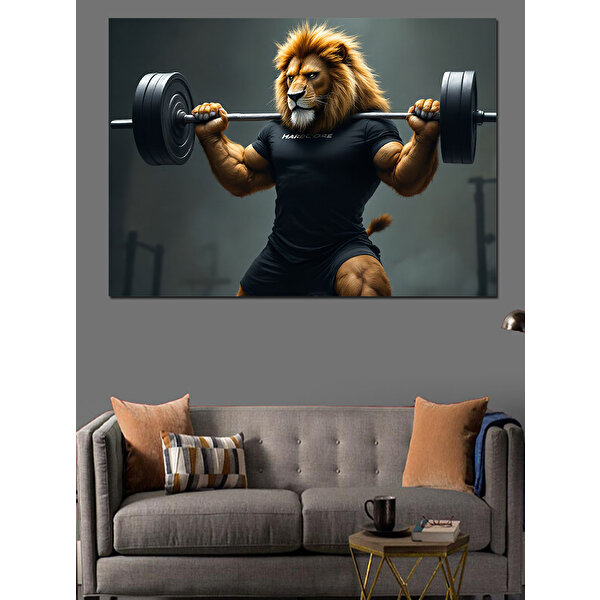 Tablomega Gym Ağırlık Çalışan Aslan Dekoratif Kanvas - Mdf Ahşap Tablo 100x140 cm