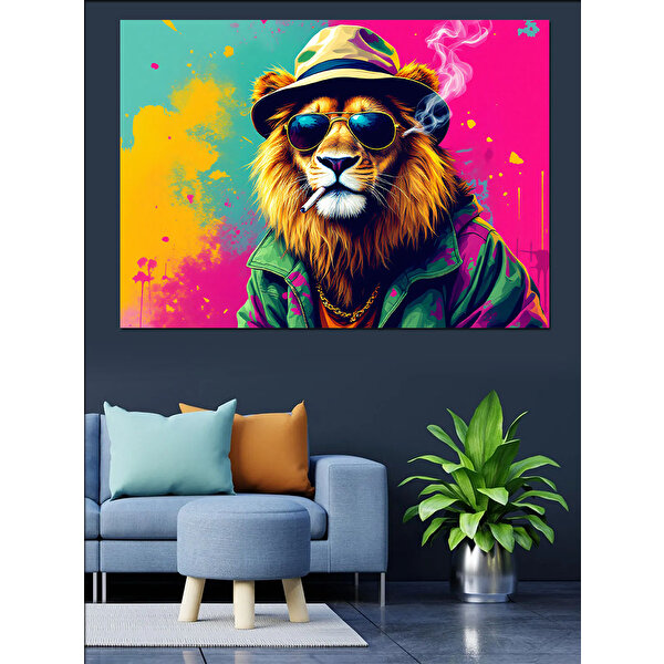 Havalı Gözlüklü Aslan Dekoratif Kanvas - Mdf Ahşap Tablo