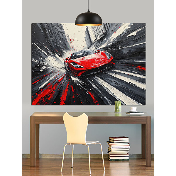 Tablomega Hızlı Kırmızı Araba Dekoratif Kanvas - Mdf Ahşap Tablo 70x100 cm
