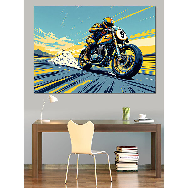 Tablomega Hızlı Motosiklet Yarışı Dekoratif Kanvas - Mdf Ahşap Tablo 100x140 cm