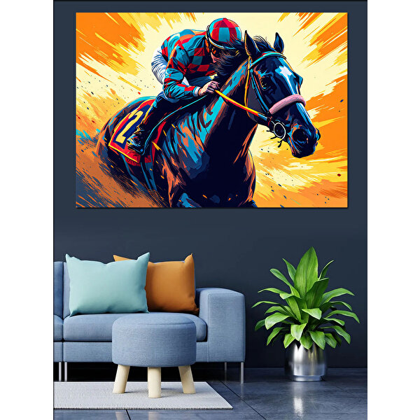 Tablomega Hızlı Yarış Atı Dekoratif Kanvas - Mdf Ahşap Tablo 100x140 cm