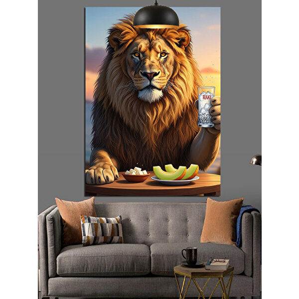 İçecekli Güçlü Aslan Dekoratif Kanvas - Mdf Ahşap Tablo