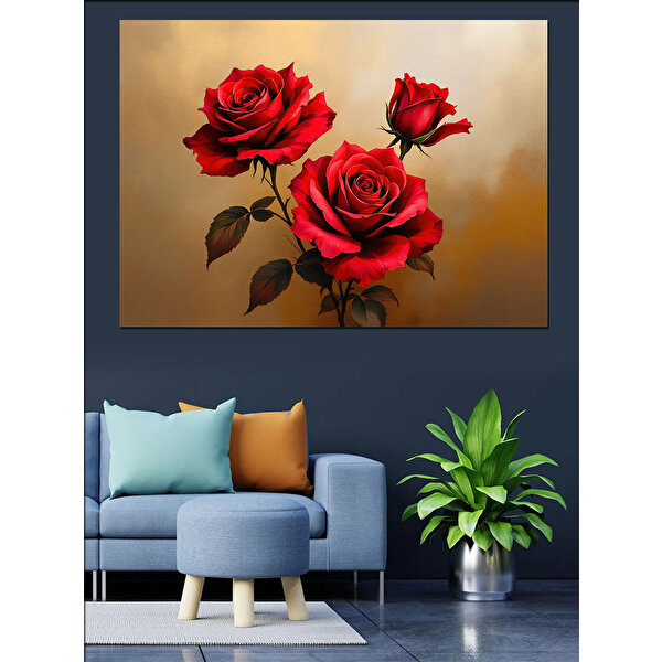 Tablomega İki Kırmızı Gül Dekoratif Kanvas - Mdf Ahşap Tablo 35x50 cm