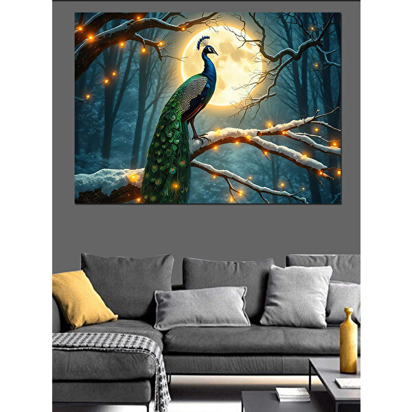 Işıklar Altında Tavuskuşu Duruşu Dekoratif Kanvas - Mdf Ahşap Tablo