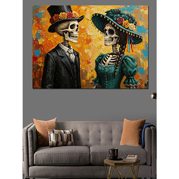 İskelet Çift Meksika Tarzı Dekoratif Kanvas - Mdf Ahşap Tablo